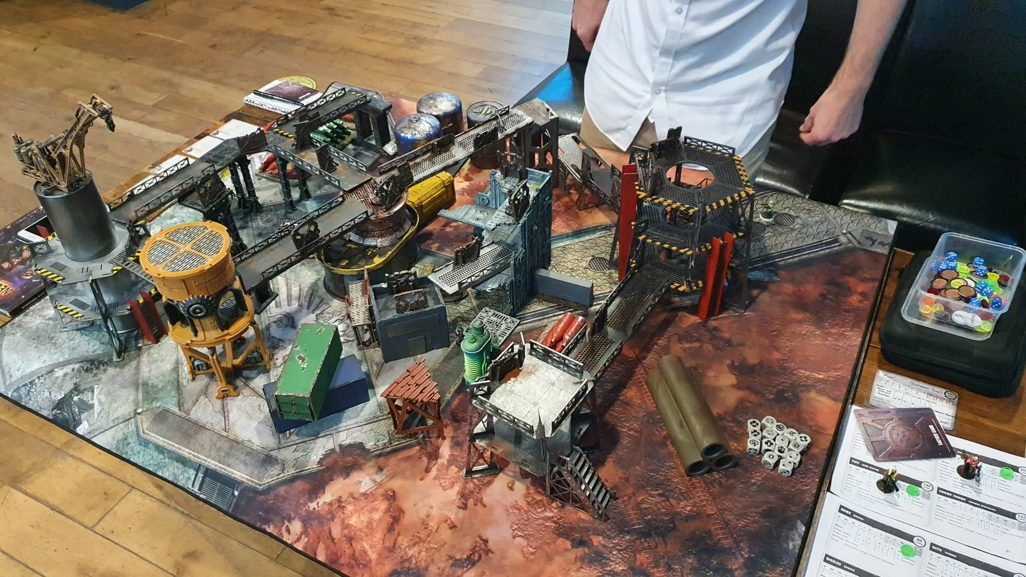 Remaining pinned the enforcer sniper reassessed the situation and relayed new orderes to the Murmurations. Hold back and allow the cultists to do the dirty work on the Orlocks, slip in and escape with the crystals while they dealt with each other. Take potshots to soften both sides up but do not engage. Confident in these new orders G0LD3N3Y3 risked pulling himself up to return fire. Just as he leveled his rifle the Cultist sniper shot again, hitting the enforcers gun. The shot travelled the length of the sniper barrel exploding into G0LD3N3Y3'S gloved hand, the force of the blast sending him reeling off the platform to the cold hard steel floor two storey's below.